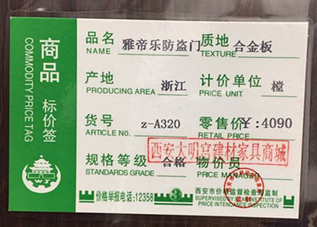 雅帝乐防盗门z-A320 原价:4090元 现活动价:3000元 时间有限,先到先得!