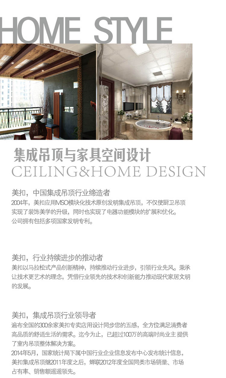 美扣吊顶成立于 2001 年,公司地处沪杭苏甬金三角中心位置, 中国集成吊顶产业基地——嘉兴市王店镇。